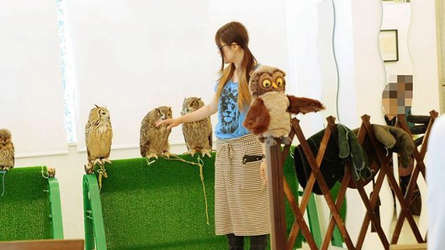 Búhos por todas partes, es lo que se puede ver al entrar en cualquiera de las cafeterías japonesas dedicadas a estas aves, que se han convertido en la nueva tendencia en Tokio. Además de hermosos y bien cuidados búhos y lechuzas, en las cafeterías se pueden ver fotos de estas aves y probar comida ornamentada con esta temática. Aquí no solo se puede comer o tomar café, sino también tener a las aves durante la cena, acariciarles la cabeza y ponerlas sobre el brazo o el hombro.